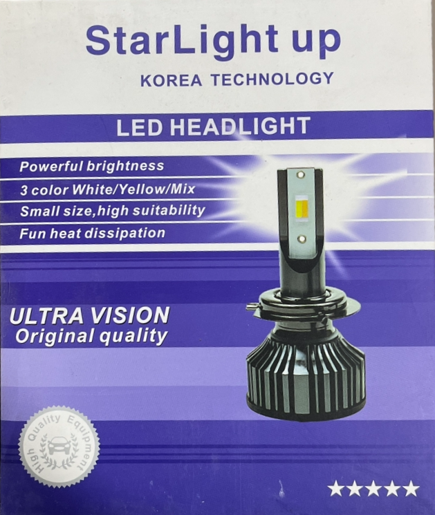 هدلایت – استارلایت 2 خار H7 55W سه رنگ ( یخی آفتابی زرد ) بسته بندی بنفش