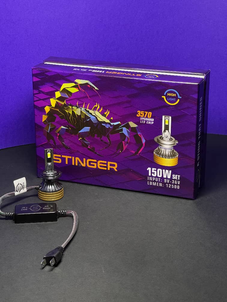 هدلایت _ هایلایت 2 خار H7 150W STINGER بسته بندی بنفش