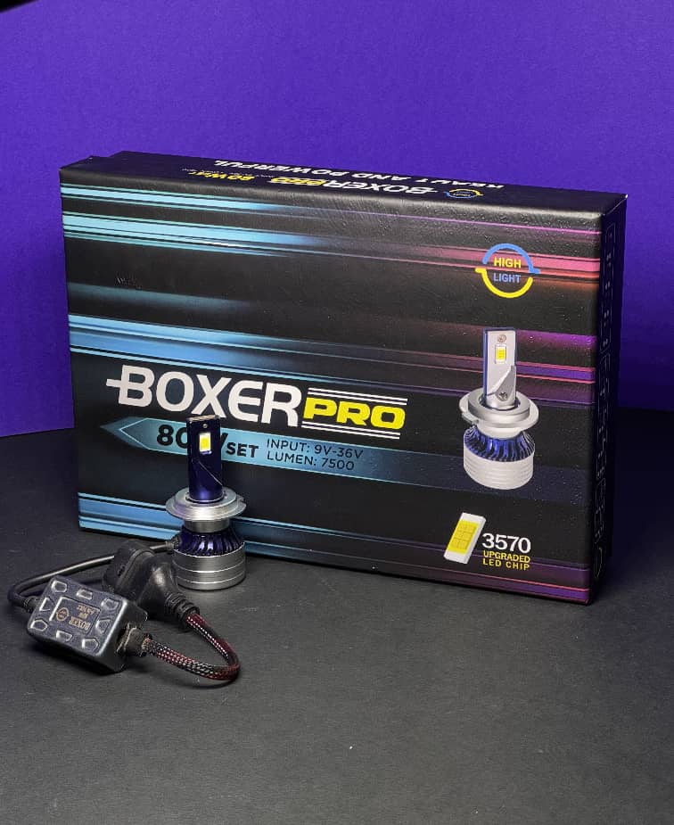 هدلایت _ هایلایت 2 خار H7 80W BOXER بسته بندی مشکی